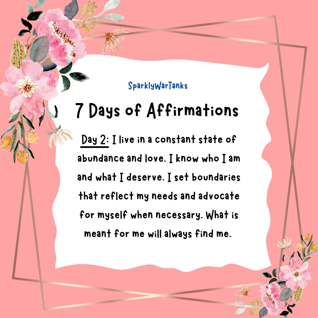 It’s day 2 of affirmations! After a long day of work, here are the words I want to practice: I live in a constant state of abundance and love. I know who I am and what I deserve. I set boundaries that reflect my needs and advocate for myself when necessary. What is meant for […]